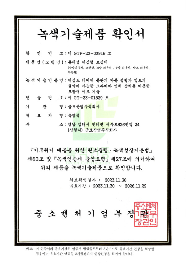 녹색기술 인증서